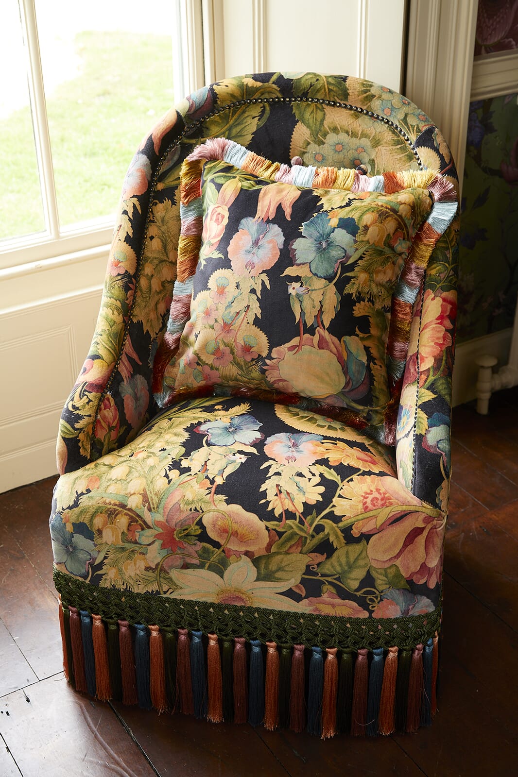 • AMATORIA Medium Fringe Velvet Cushion - Noir